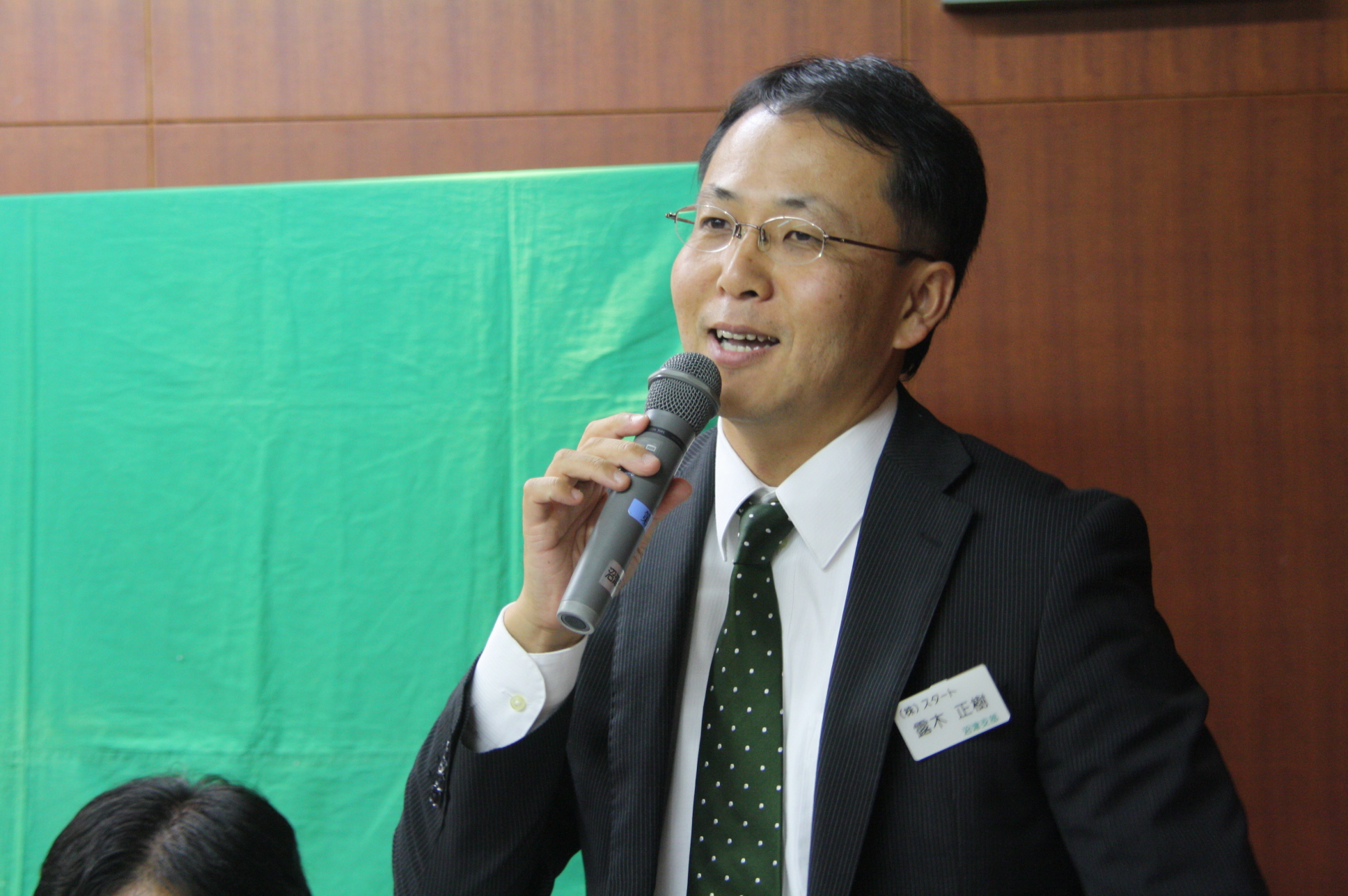 「お客様の人生の安心サポーターとして寄り添う存在に」と語る露木正樹氏(㈱スタート 代表取締役)。沼津支部6月例会の我が経営を語るは、保険代理店を20年にわたって経験する露木氏が報告者として登壇しました。