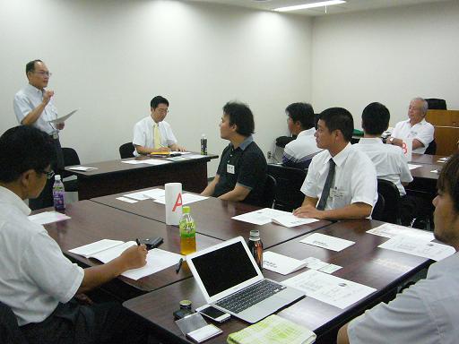 「同友会を知ってもらうためのセミナーです。1000名の組織にしたいと活動しています。」藤原組織拡大本部長のあいさつから、8月のイントロセミナーが始まりました。新会員4名、オブザーバー2名、そして榛原の役員、県スタッフら15名での開催です。知久正博氏は「同友会と私」の報告で、会の理念に共感したこと、当初は見えなかった自主の意味、初代支部長と共に創ってきた榛原支部の20年の軌跡を振り返りました。知久氏は、支部の活動だけでなく全国大会に参加することで、もっと同友会の良さを実感できますと、三大行事への積極的な参加を呼びかけました。