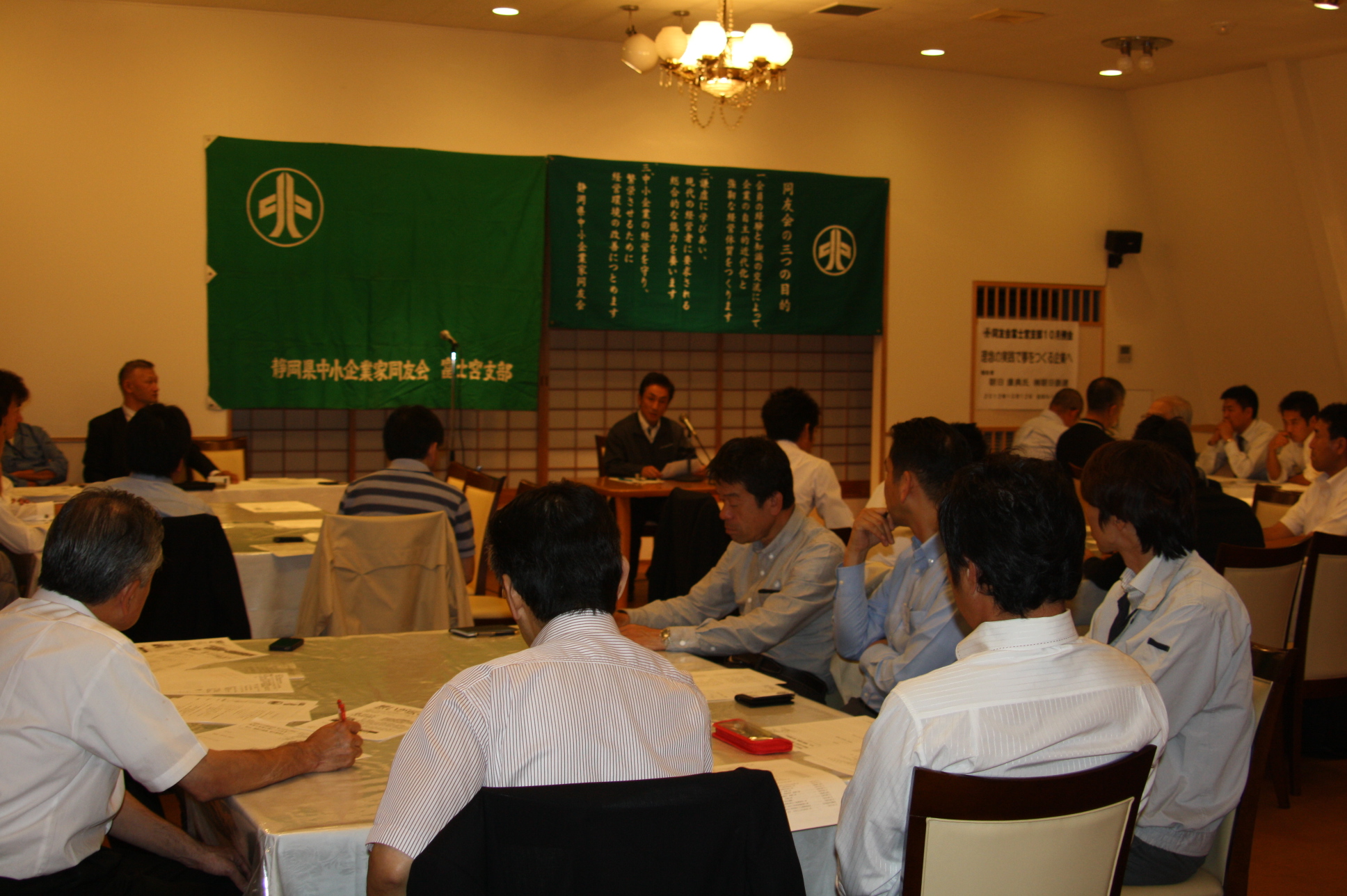 9月の例会は、11月に三島で開催される全県経営フォーラム報告者である㈱朝日鉄建 代表取締役朝日康典氏の本番に向けての報告です。
