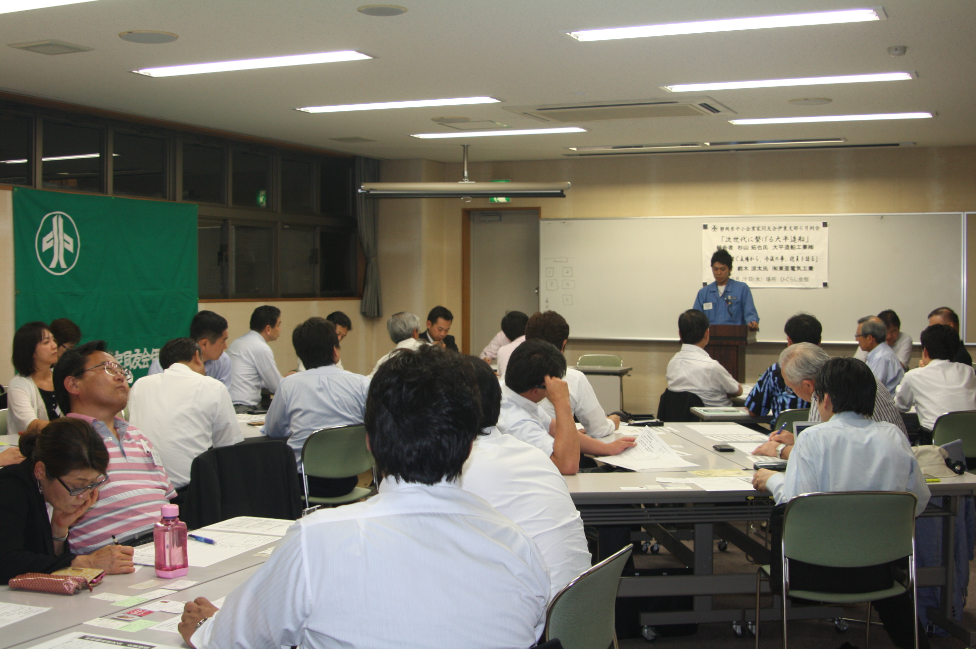 江戸時代より先祖代々伊東市にて木造漁船の建造を行ってきた大平造船工業㈱。長い歴史を受け継ぐ覚悟を決め、マリンスポーツ業から家業に戻った杉山氏。木造漁船の激減により、造船のFRP技術をいかした防水・塗装業に進出しました。「何事においても安定した会社にしたい」と報告を締めくくりました。
