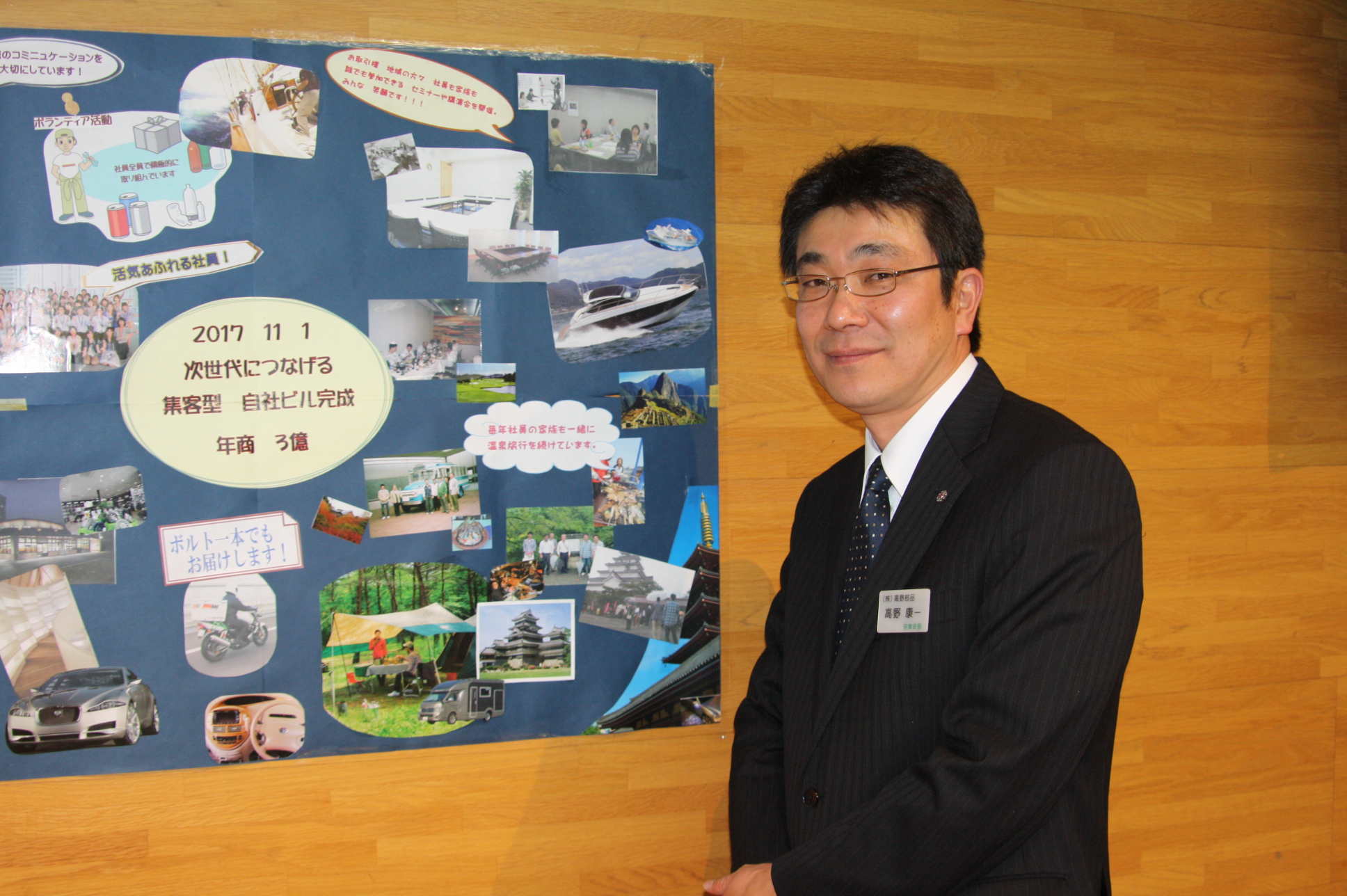 自動車部品の小売販売業を営まれている高野氏。メーカー系の部品販売会社を経験し、お父様の経営する高野部品に入社。8年後に専務になり、更にその8年後に社長に就任しました。